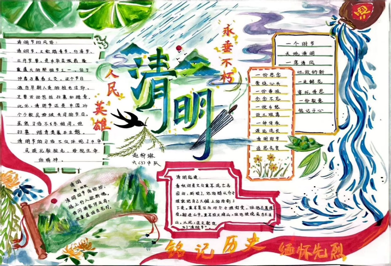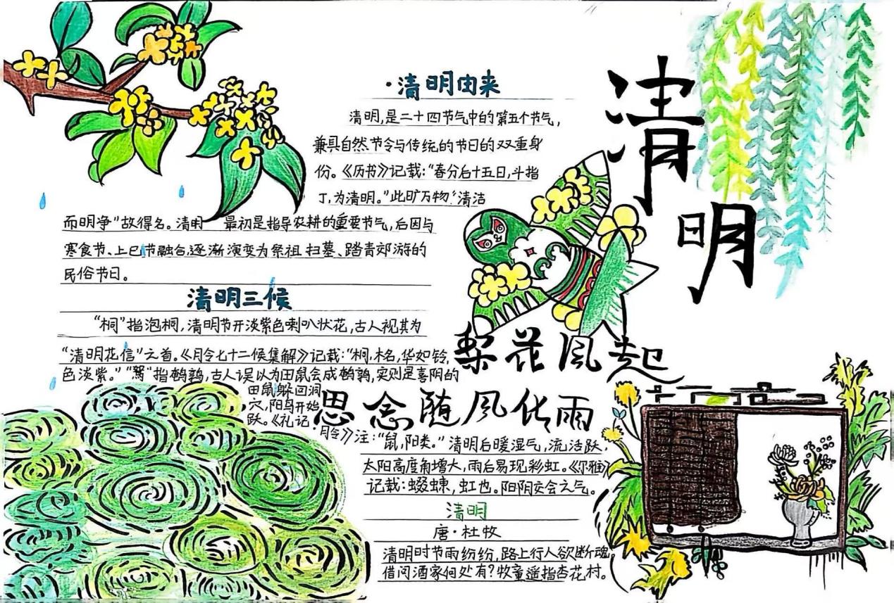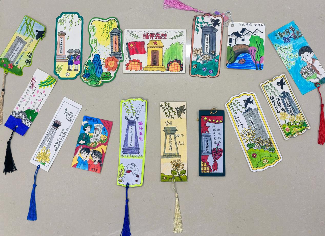 这些手抄报、书签作品主题鲜明,色彩或清新淡雅,或庄重肃穆,完美契合清明氛围。每一幅作品都是同学们的精心之作,既锻炼了动手能力,又加深了对清明节文化内涵的理解,在传承传统文化的同时,表达对先烈、先人的缅怀之情 。
