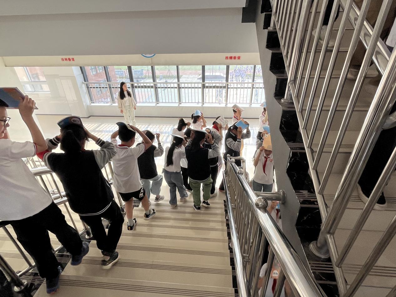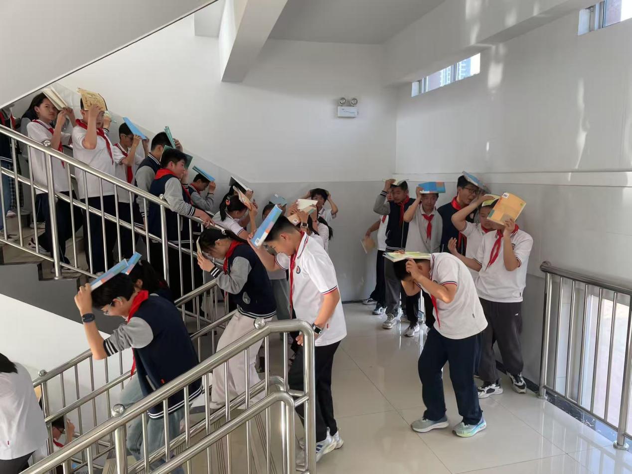 随着警报声响起,演练迅速展开。各班教师立即停止授课,组织学生采取应急避震措施。随后,广播下达疏散指令,各班级按"低楼层先行、分路线撤离"原则,从教学楼三侧共四步楼梯,进行有序疏散。
