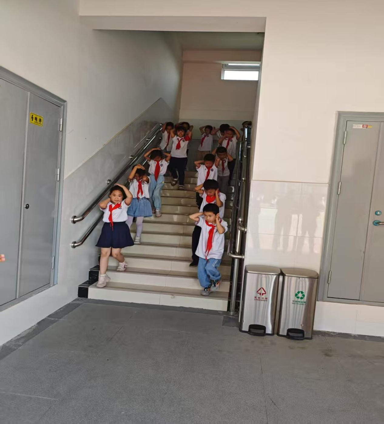 过程中,教师不断提醒“注意脚下、保持间距”,学生全程保持低姿护头姿态,有序疏散。到指定的安全区域后,各班迅速清点人数并上报,整个演练过程井然有序。全校师生仅用1分58秒便安全疏散至操场指定区域,并迅速完成人数清点上报工作。