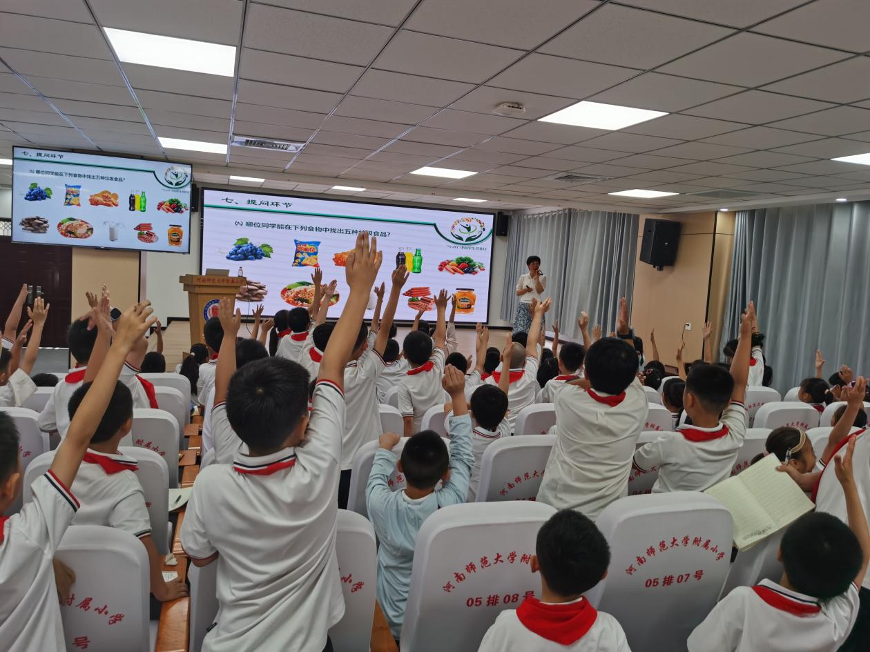 学生们听得特别认真,笔记也记得非常好,以至于在互动环节中,同学们都非常积极,踊跃回答问题,又进一步巩固了所学知识。同学认识到“烧饼夹鸡蛋”不能代替营养全面的早餐,也明白了含乳饮料不能替代纯牛奶。