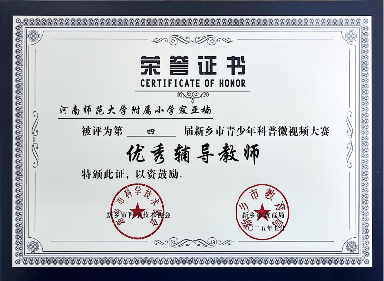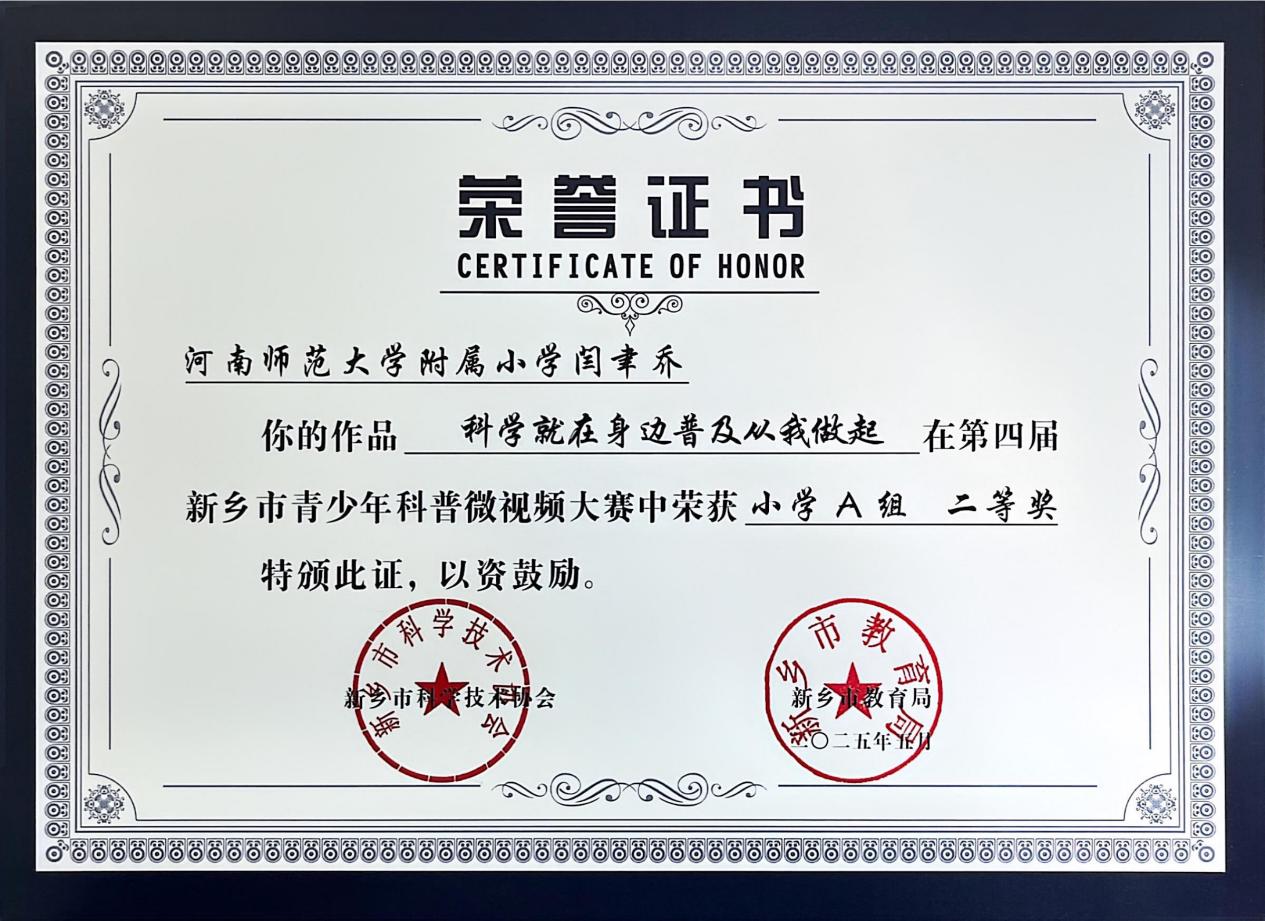 在第四届新乡市青少年科普微视频大赛中,我校师生以卓越表现斩获佳绩,彰显了学校在科普教育领域的深厚底蕴。