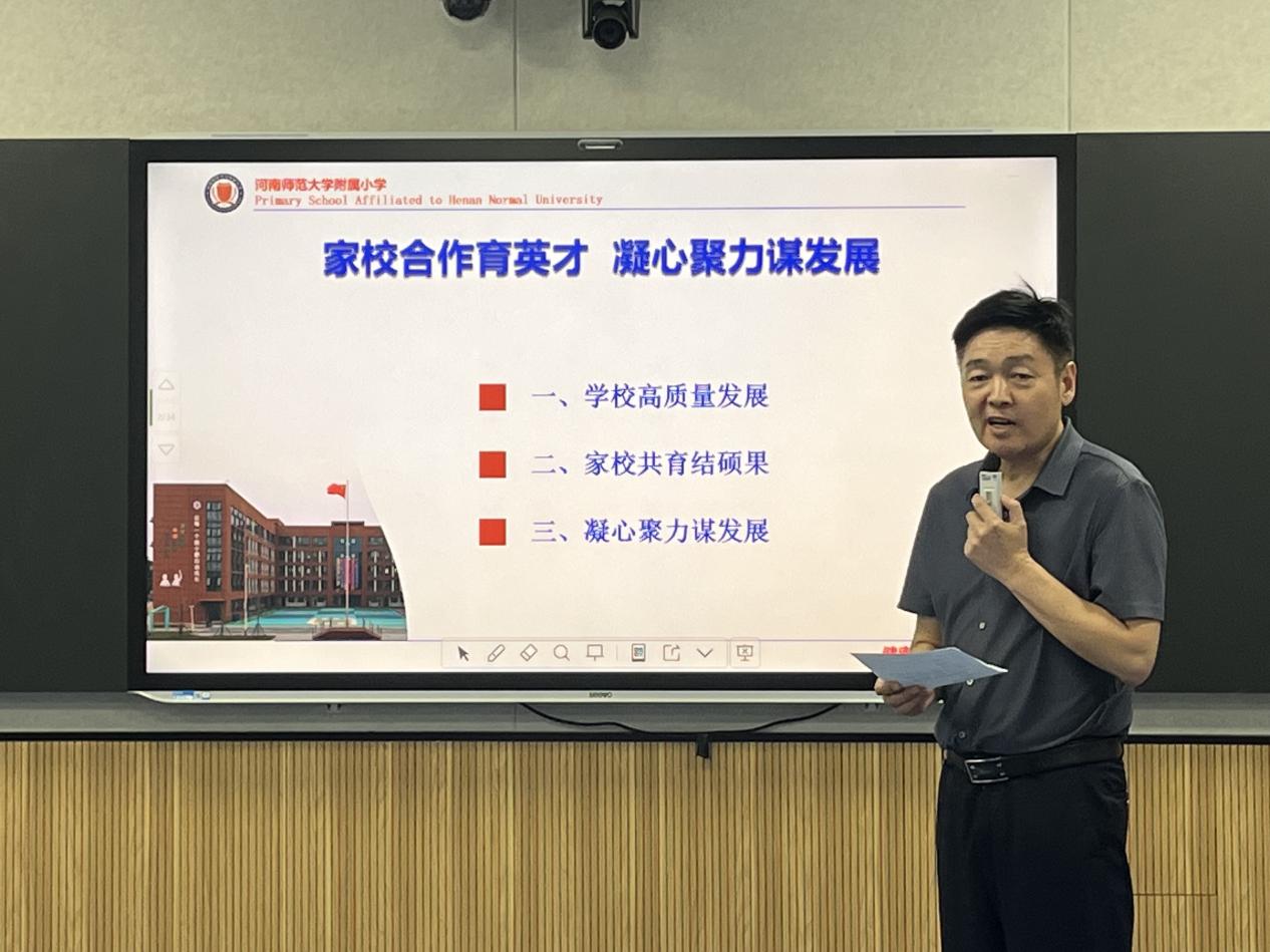 会议伊始,李万里校长通过校园广播系统发表讲话,就学校高质量发展、家校共育及新学期发展规划与家长进行分享。他从教育教学成果、学生综合素养培育、教师成长、安全等方面介绍了学校的重点举措,强调家校协同是推动孩子全面发展的重要保障,鼓励家长积极参与学校教育,形成育人合力。
