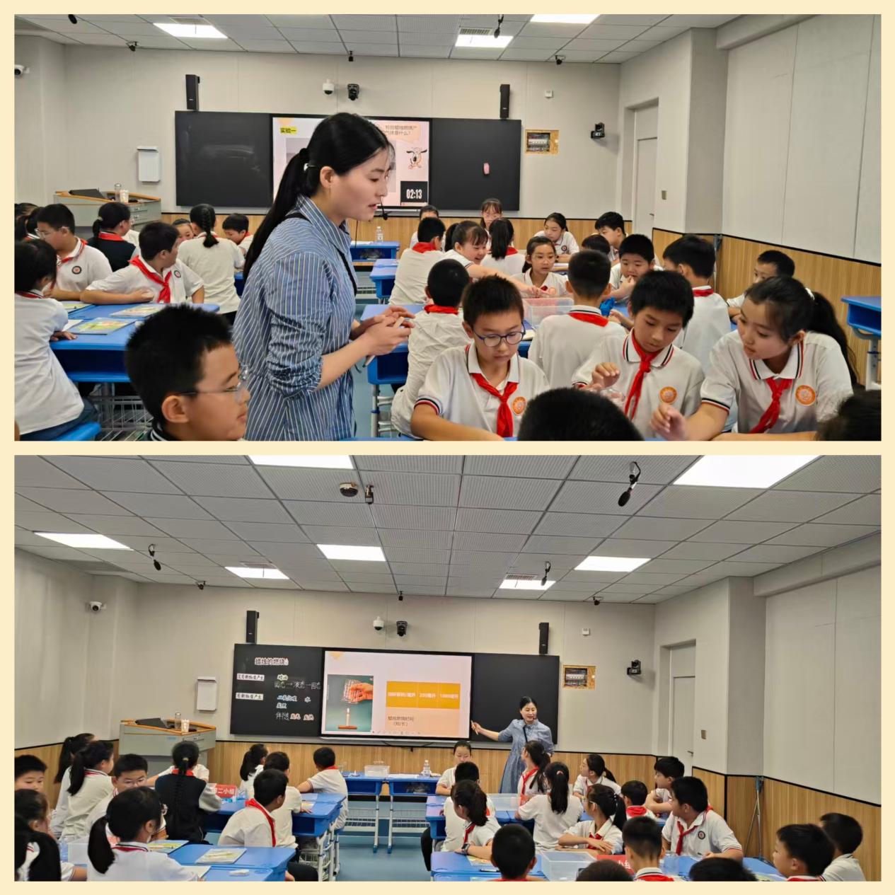 寇亚楠老师的科学课,将活动推向了又一个高潮。课堂变成了有趣的实验室,学生们分组合作,动手操作,仔细观察蜡烛燃烧的奇妙现象。在充满好奇的探索和验证中,科学原理悄然内化。孩子们沉浸在动手实验的快感中,其乐无穷,科学探究的种子在心中生根发芽。