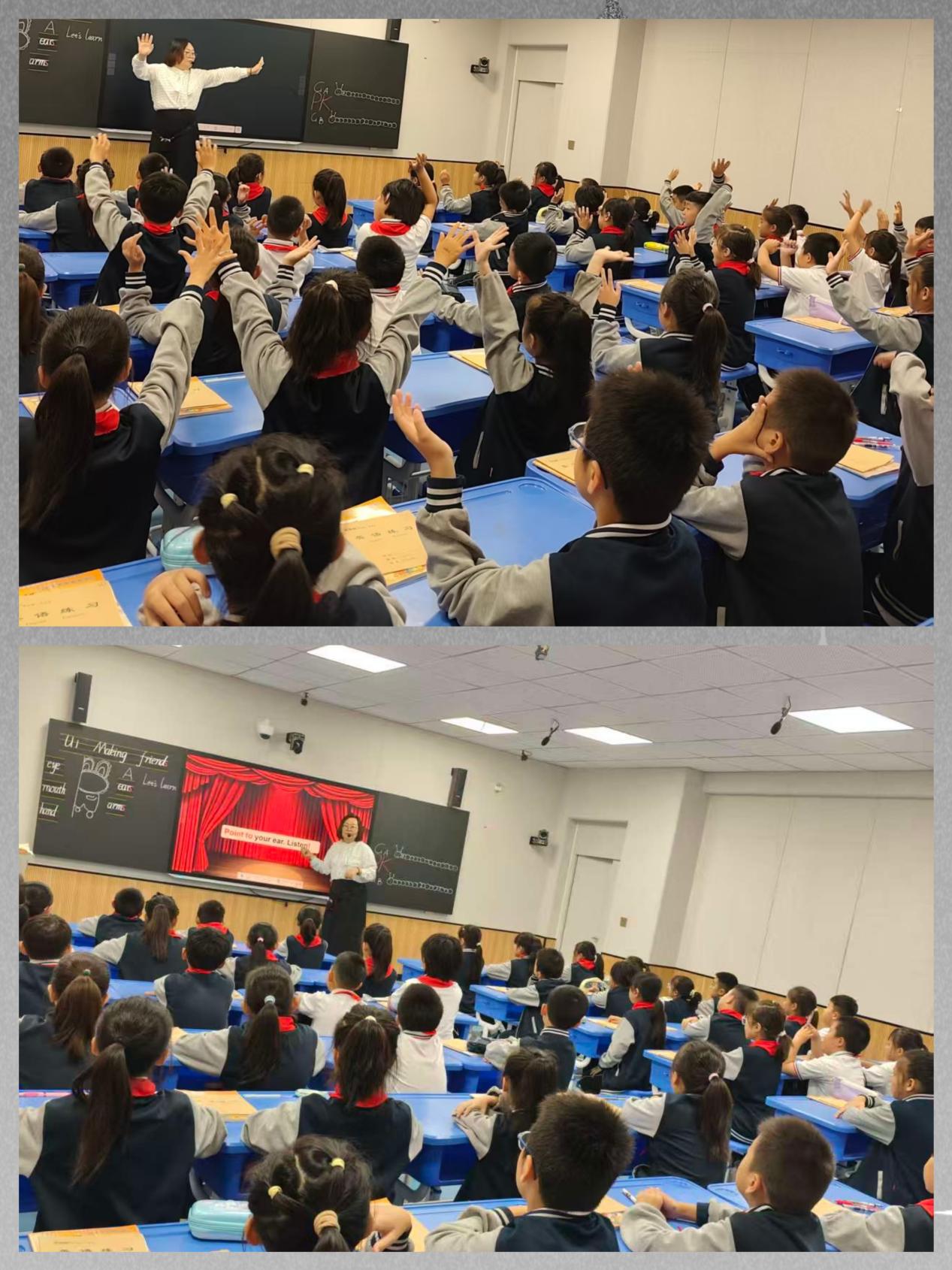 李继敏老师的英语课堂充满了趣味与活力。她巧妙地将深受孩子们喜爱的“拉布布”形象贯穿课堂始终,创设了生动有趣的交友情境。在“拉布布”的陪伴下,同学们热情高涨,在轻松愉快的氛围中大胆开口、积极互动,真正实现了在“乐中学”,在“学中用”,点燃了孩子们学习英语的浓厚兴趣。