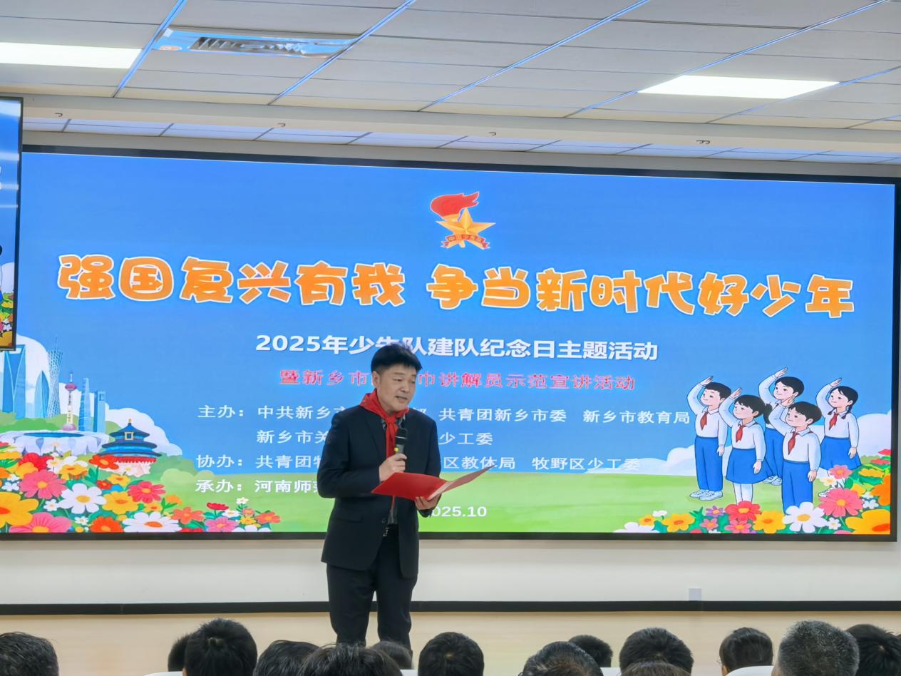 会后,市教育局党组成员、市少工委主任冯建对在场大、中队辅导员表示,本次活动既是生动的少先队主题教育实践,也是精神的传承与接力,活动中红色基因的扎根、素质教育的成果,离不开每一位辅导员的辛勤付出。他同时提出要求,希望辅导员们将活动精神融入日常队会与研学,实现思想教育常态化;建强红领巾讲解员队伍,挖掘本地资源讲好新乡故事;结合学生特点设计实践活动,推动“争当新时代好少年”目标落地,助力少先队成为培育时代新人的重要阵地,共同推动新乡市少先队工作再上新台阶。