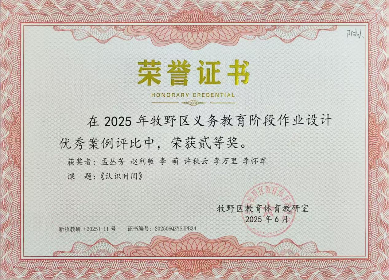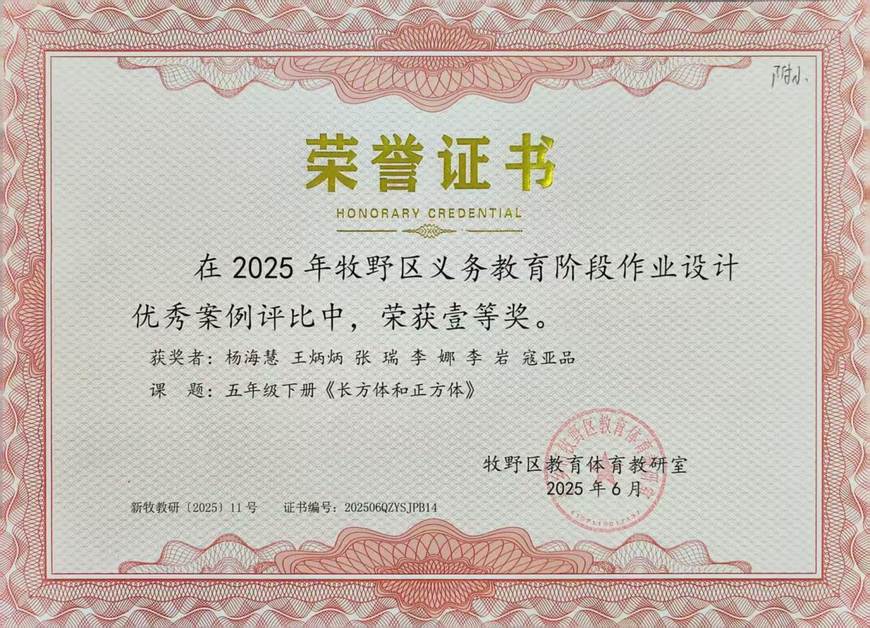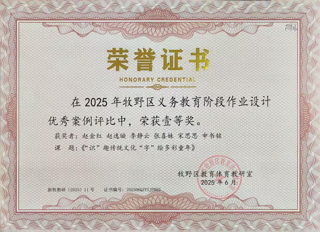 年牧野区义务教育阶段作业设计优秀案例评比中,我校杨海慧老师团队、赵金红老师团队获得一等奖,孟丛芳老师团队获得二等奖。