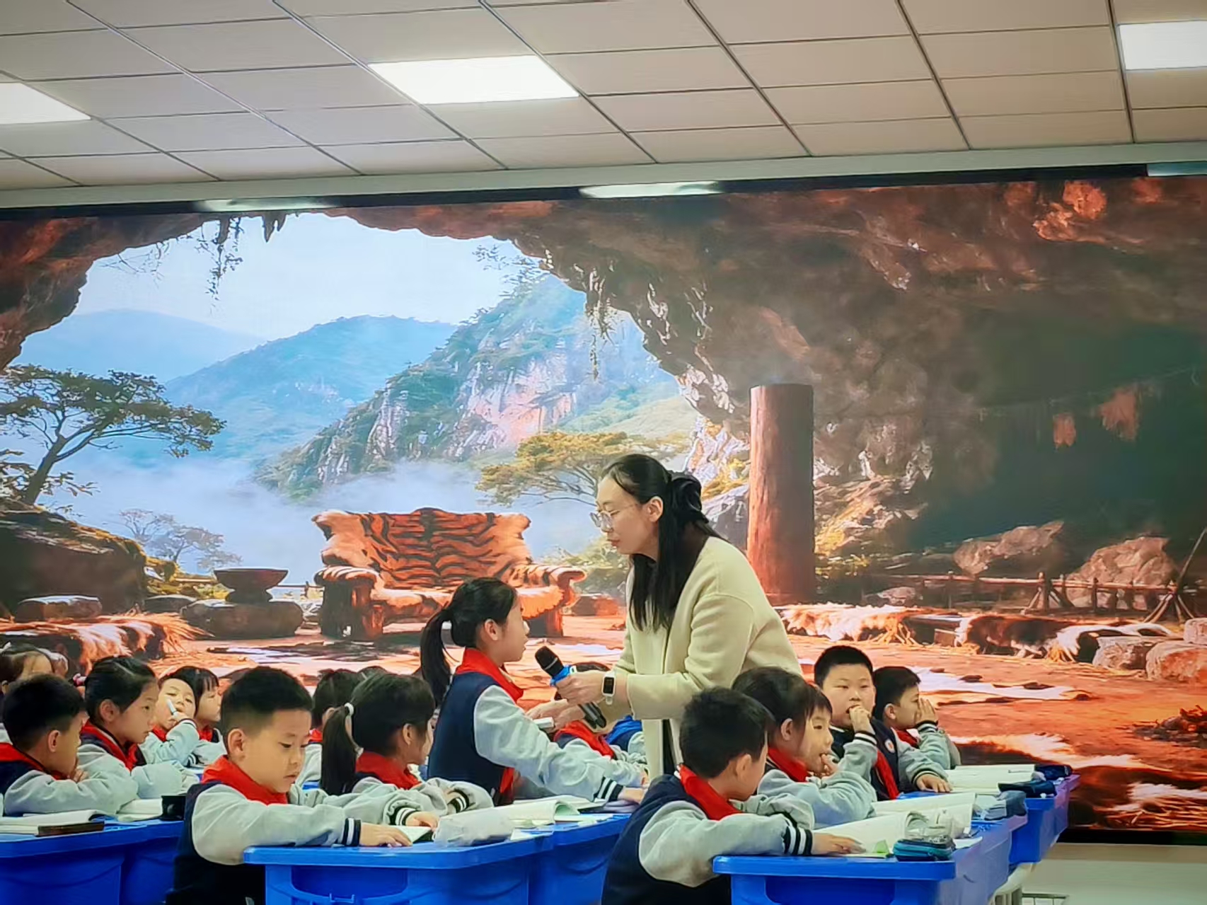 随后,赵妍老师与二(4)班学生共同展示了校本课程《汉字奥秘》中的《叶公好龙的“龙”》。赵老师紧扣“龙”这一文化符号,在识字教学的基础上,巧妙融入文化自信、民族精神等思政元素,引导学生从知识的接受者升华为文化的认同者与传承者,实现了立德树人的育人目标。