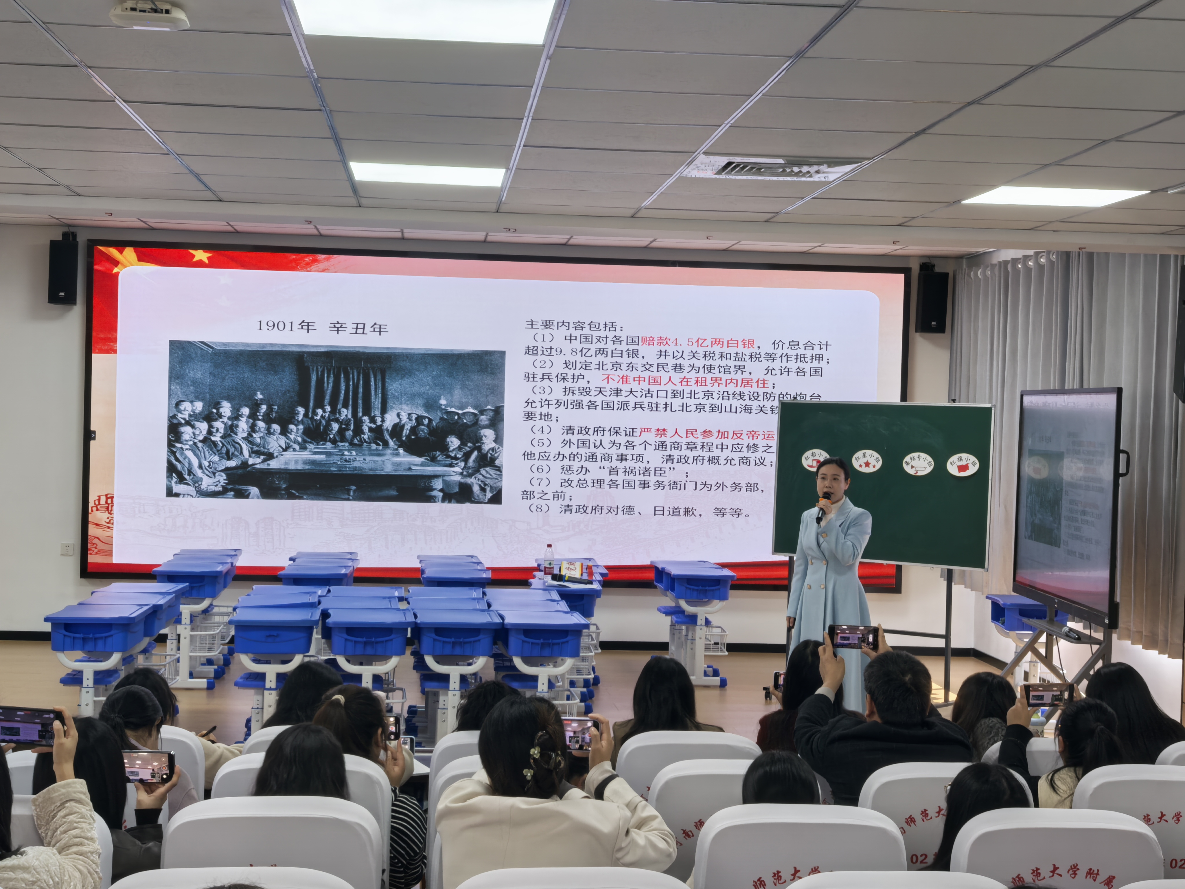 孟珍老师带来了《习近平新时代中国特色社会主义思想学生读本(高年级)》中的《没有共产党就没有今天的中国》。她运用今昔对比的策略,将宏大主题具象化,通过小组合作探究,引导学生结合自身体会层层深入,使整节课既有理论高度和思想深度,又充满情感温度,有效激发了学生的爱国爱党情怀,赢得了观摩教师的一致好评。
