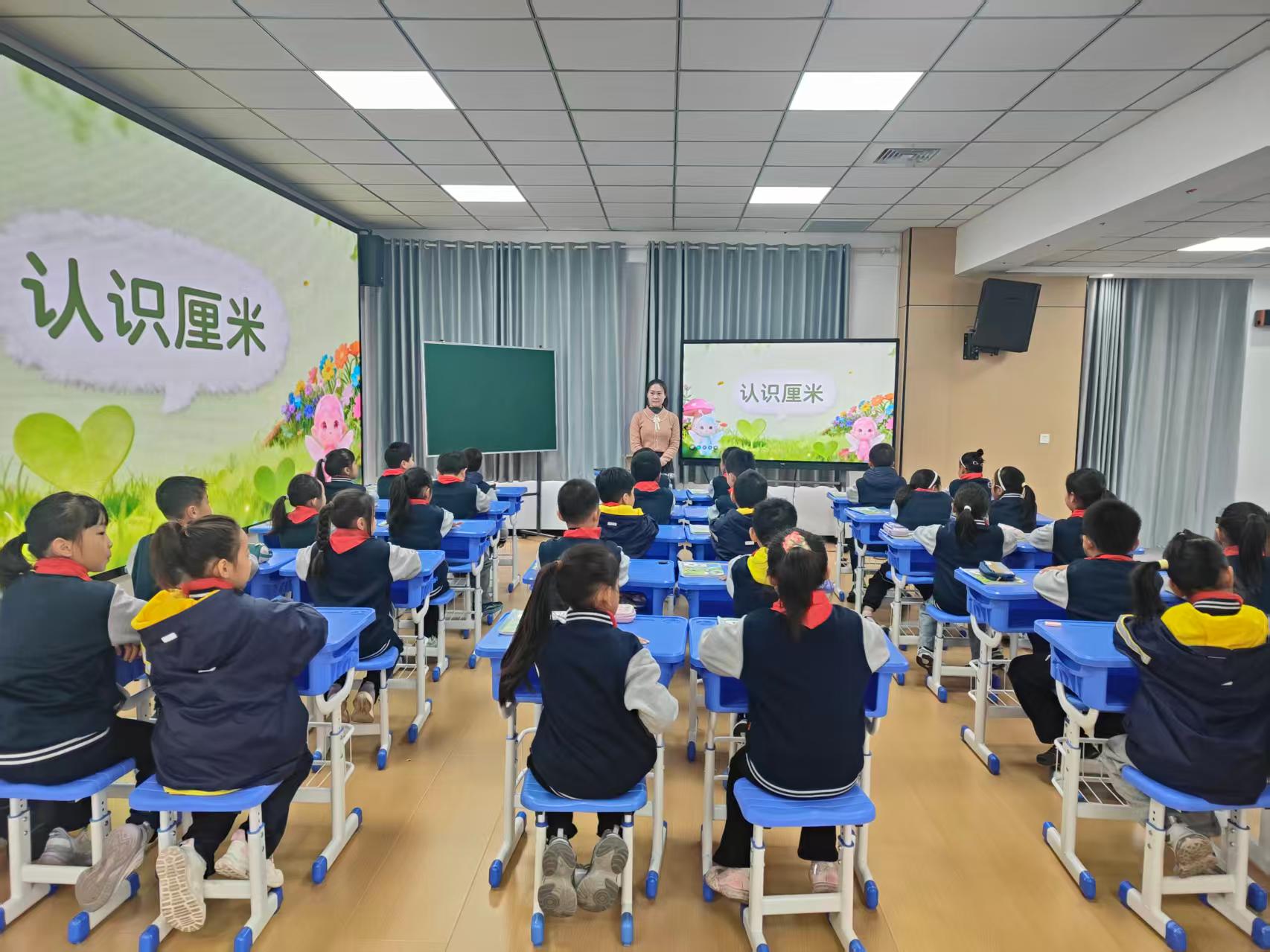 侯诗若老师以“森林精灵建木屋”为引,巧妙展开认识厘米的教学。课堂上,侯老师先带领学生体验古人用庹、脚长、拃等身体部位测量的方法,通过 “用拃量课桌但测量结果不同” 的现象,自然引出统一测量标准的必要性。随后借助小棒拼合、观察尺子等活动,充分调动了学生学习的积极性。整堂课将抽象知识具象化、枯燥内容趣味化,既让学生扎实掌握测量技能,又激发了探索热情。
