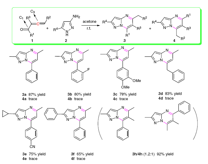 同时被Synfacts收录, Synthesis of Pyrazolopyrimidines from 1,2-Allenic Ketones and Aminopyrazoles.