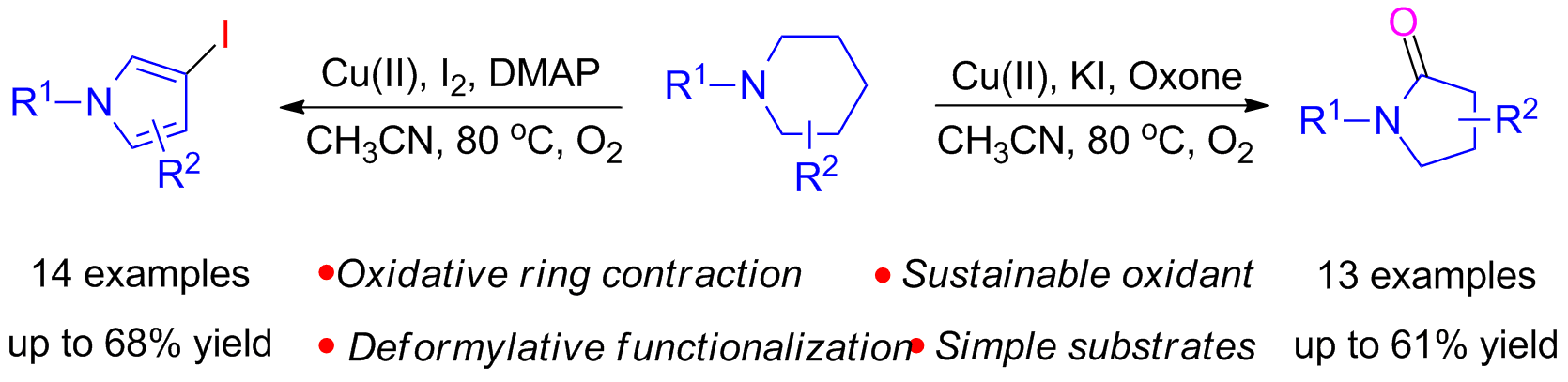 1). Fang Wang, Xinying Zhang, Yan He, Xuesen Fan*. Selective synthesis of pyrrolidin-2-ones and 3-iodopyrroles via the ring contraction and deformylative functionalization of piperidine derivatives. Org. Biomol. Chem., 2019, 17 (1), 156-164.