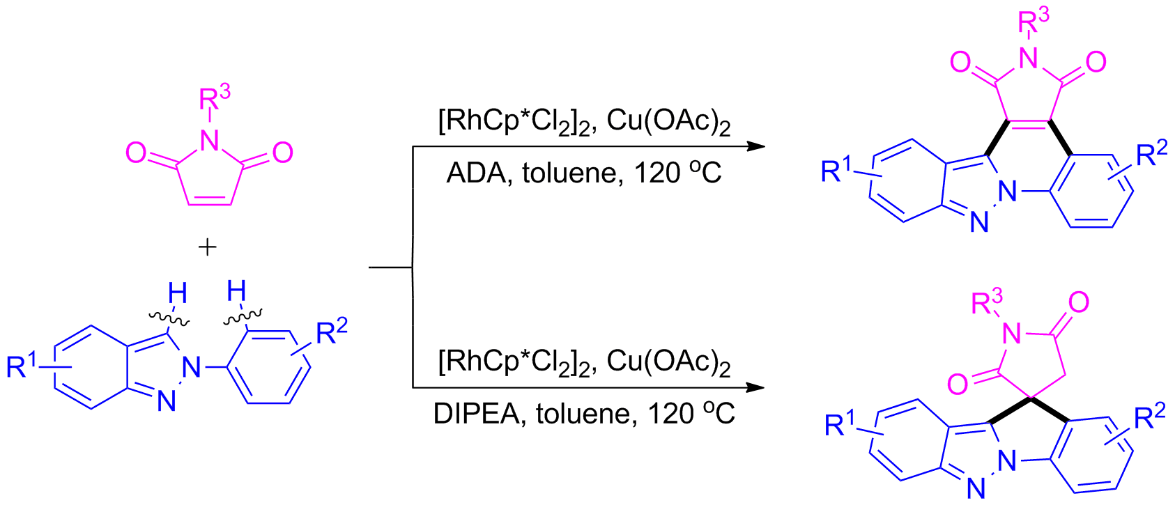 6). Chenhao Guo, Bin Li, Huilai Liu, Xiaopeng Zhang, Xinying Zhang* and Xuesen Fan.* Synthesis of Fused or Spiro Polyheterocyclic Compounds via the Dehydrogenative Annulation Reactions of 2-Arylindazoles with Maleimides.Org. Lett., 2019, 21(18), 7189-7193.