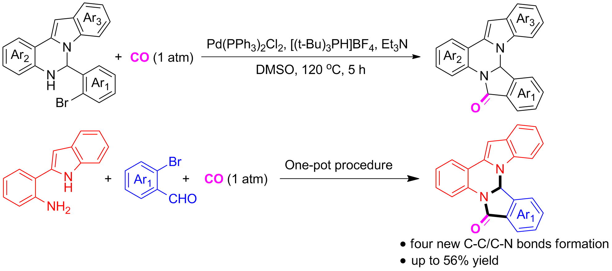 11). Shenghai Guo,* Fang Wang, Yangfan Liu, Xuesen Fan.* Palladium-catalyzed carbonylative synthesis of indoloisoindoloquinazolinone derivatives by using CO as a carbonyl source. Tetrahedron 2019, 75 (24), 3355-3360.
