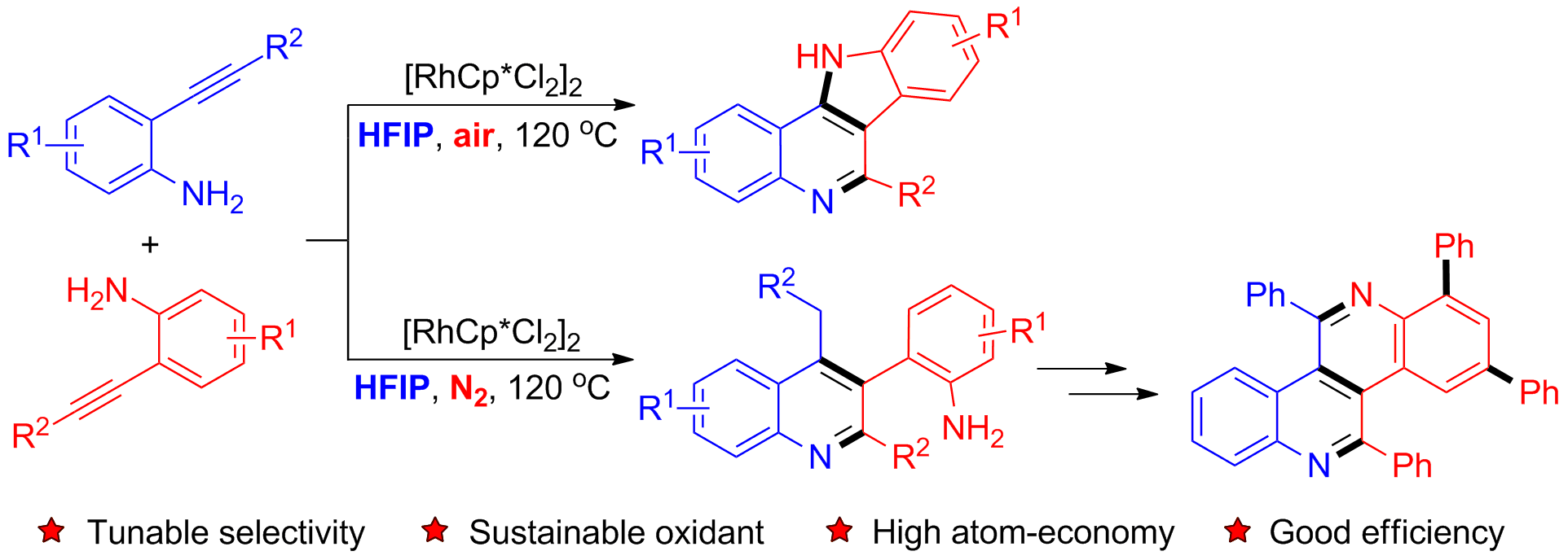 4). Ruixue Jia, Bin Li, Rong Liang, Xinying Zhang*, and Xuesen Fan*. Tunable Synthesis of Indolo[3,2-c]quinolines or 3-(2-Aminophenyl)quinolines via Aerobic/Anaerobic Dimerization of 2-Alkynylanilines. Org. Lett., 2019, 21 (13), 4996-5001.