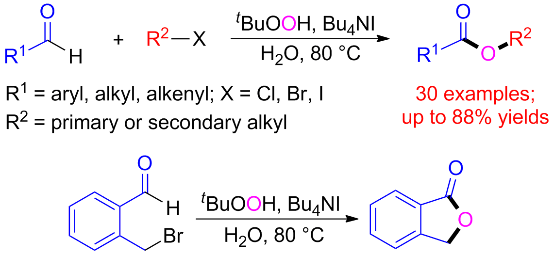 7). Qianqian Wang, Zhangxin Wang, Yuanshuang Xu, Xinying Zhang*, and Xuesen Fan*. Bu4NI-Catalyzed and tBuOOH-Oxidized Esterification of Aldehydes with Alkyl Halides in Water. Asian J. Org. Chem., 2016, 5(11), 1304-1308.