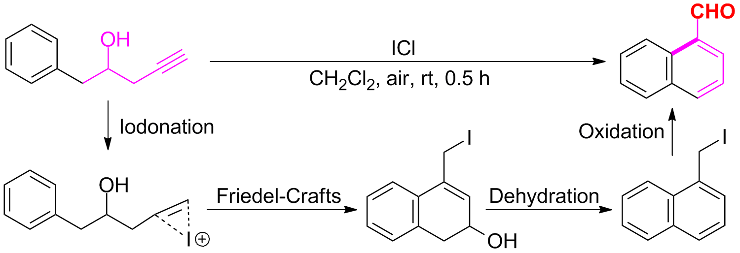 5). Bin Li, Nana Shen, Xuesen Fan*, Xinying Zhang. Synthesis of 1-naphthaldehydes via the cascade reactions of 1-phenylpent-4-yn-2-ols promoted by iodine monochloride. Tetrahedron Lett, 2016, 57(17), 1843–1846.