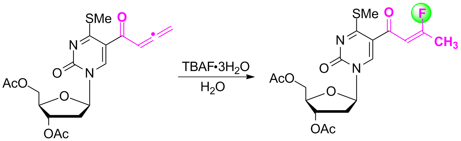 5) Shenghai Guo*, Jiliang Wang, Dongqiang Guo, Xinying Zhang, Xuesen Fan*. Synthesis of 3,5- disubstituted pyrazoles via cyclocondensation of 1,2-allenic ketones with hydrazines: application to the synthesis of 5-(5-methyl-pyrazol-3-yl)-2'-deoxycytidine. RSC Adv., 2012, 2(9), 3772-3777.