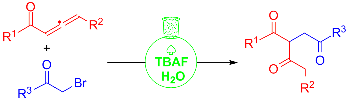 2) Xuesen Fan*, Yan He, Liangyan Cui, Xinying Zhang, Jianji Wang. Tandem reaction of 1,2-allenic ketone with α-halo ketone or α-halo ester in water: an efficient and sustainable synthesis of 1,3,4'-tricarbonyl compounds. Green Chem., 2011, 13(11), 3218-3223.