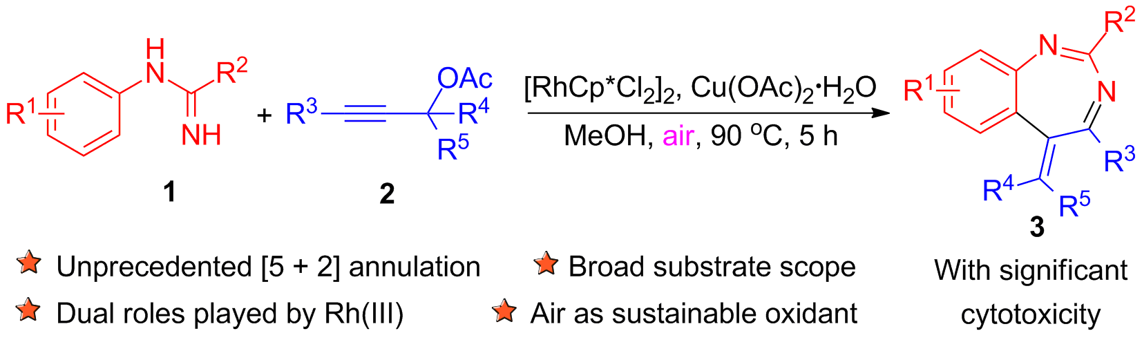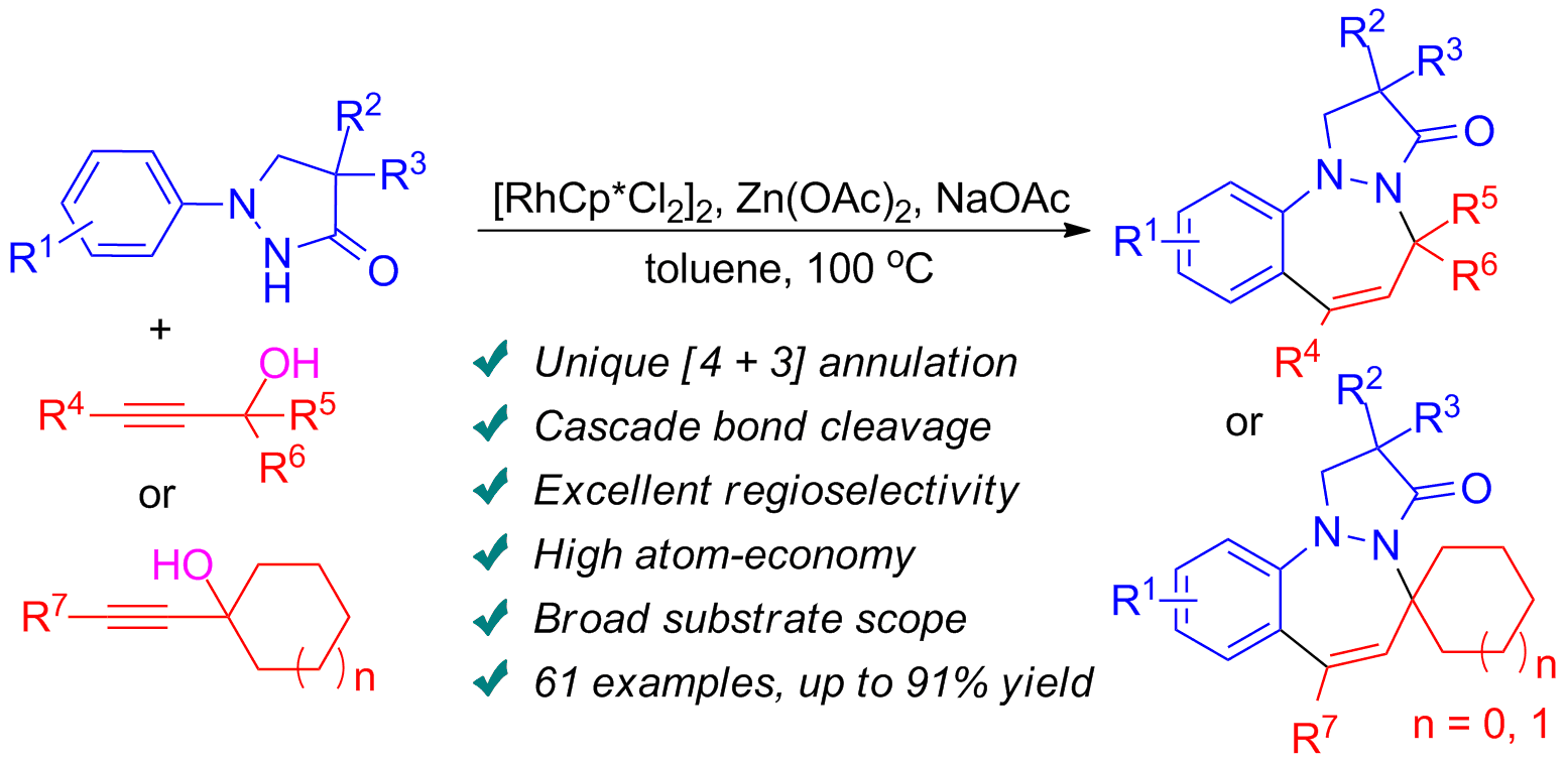 6) Linghua Zhang, Yuanshuang Xu, Xiaopeng Zhang, Xinying Zhang*, Xuesen Fan*. Synthesis of pyrazolone fused benzodiazepines via Rh(III)-catalyzed [4+3] annulation of 1-phenylpyrazolidinones with propargyl alcohols. Org. Chem. Front., 2020, doi: 10.1039/D0QO00657B.