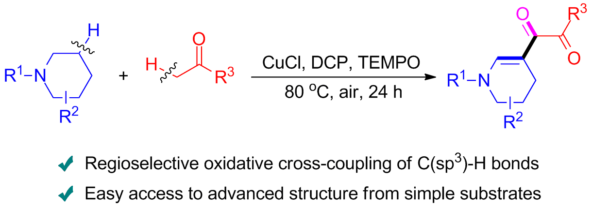 2) Fang Wang, Xinying Zhang*, Yan He, Xuesen Fan*.Synthesis of β-Dicarbonylated Tetrahydropiperidines via Direct Oxidative Cross-Coupling between Different C(sp3)–H Bonds.J. Org. Chem. 2020, 85, 2220-2230.