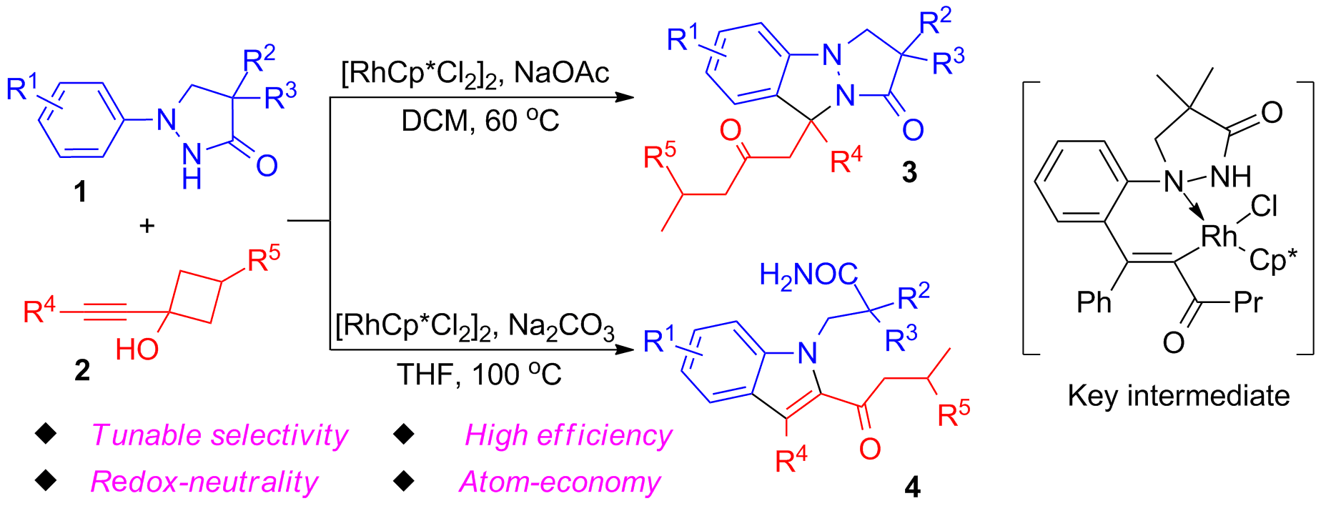 4) Yuanshuang Xu, Mengyang Shen, Xinying Zhang*, and Xuesen Fan*. Selective Synthesis of Pyrazolo[1,2-a]pyrazolones and 2-AcylindolesviaRh(III)-Catalyzed Tunable Redox-Neutral Coupling of 1-Phenylpyrazolidinones with Alkynyl Cyclobutanols. Org. Lett., 2020, 22, 4697-4702.