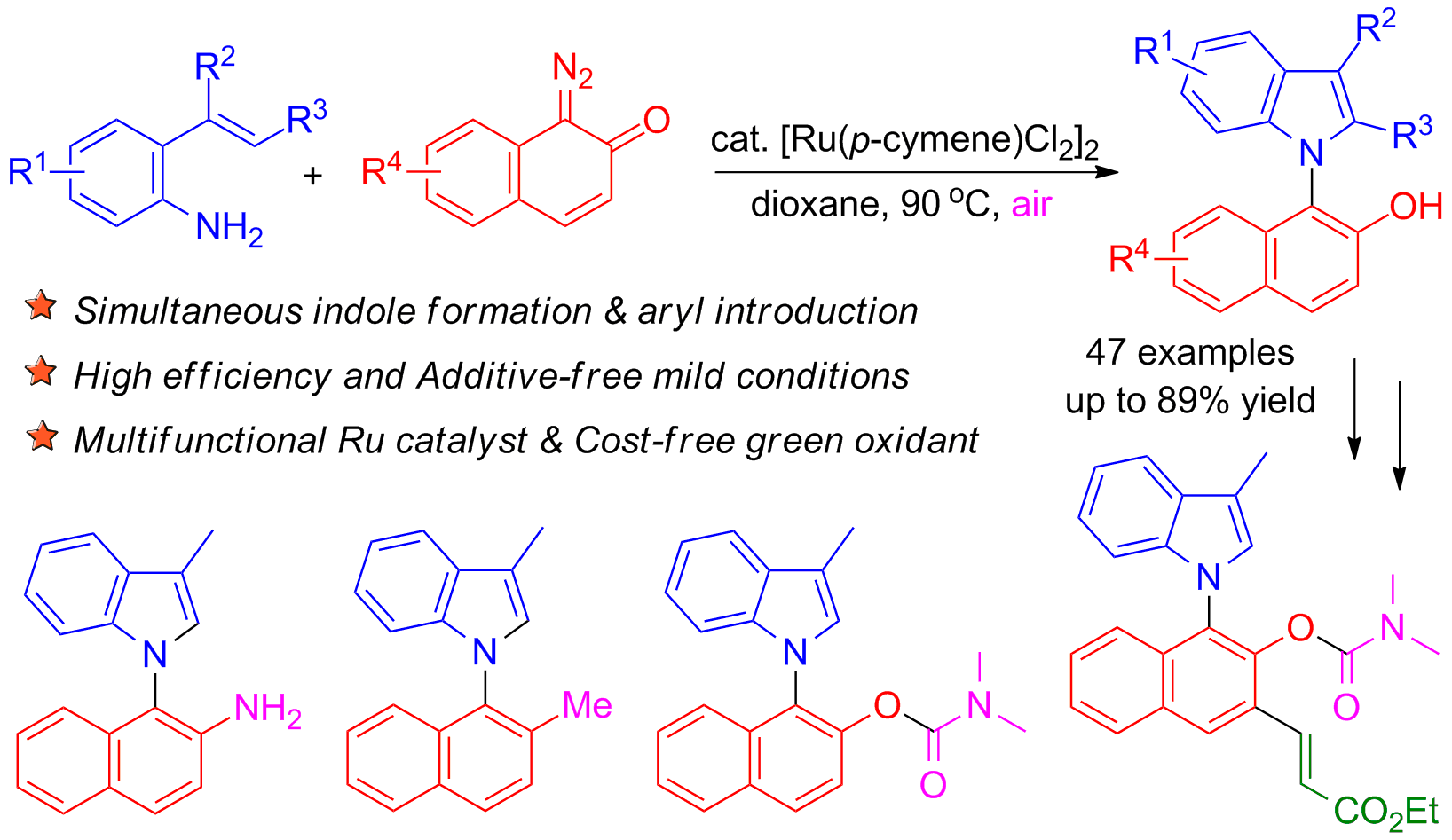 3) Caiyun Yu, Yuanshuang Xu, Xinying Zhang*, and Xuesen Fan.* Synthesis of N-Arylindoles from 2-Alkenylanilines and Diazonaphthalen-2(1H)-ones through Simultaneous Indole Construction and Aryl Introduction. J. Org. Chem. 2022, 87 (11), 7392-7404.