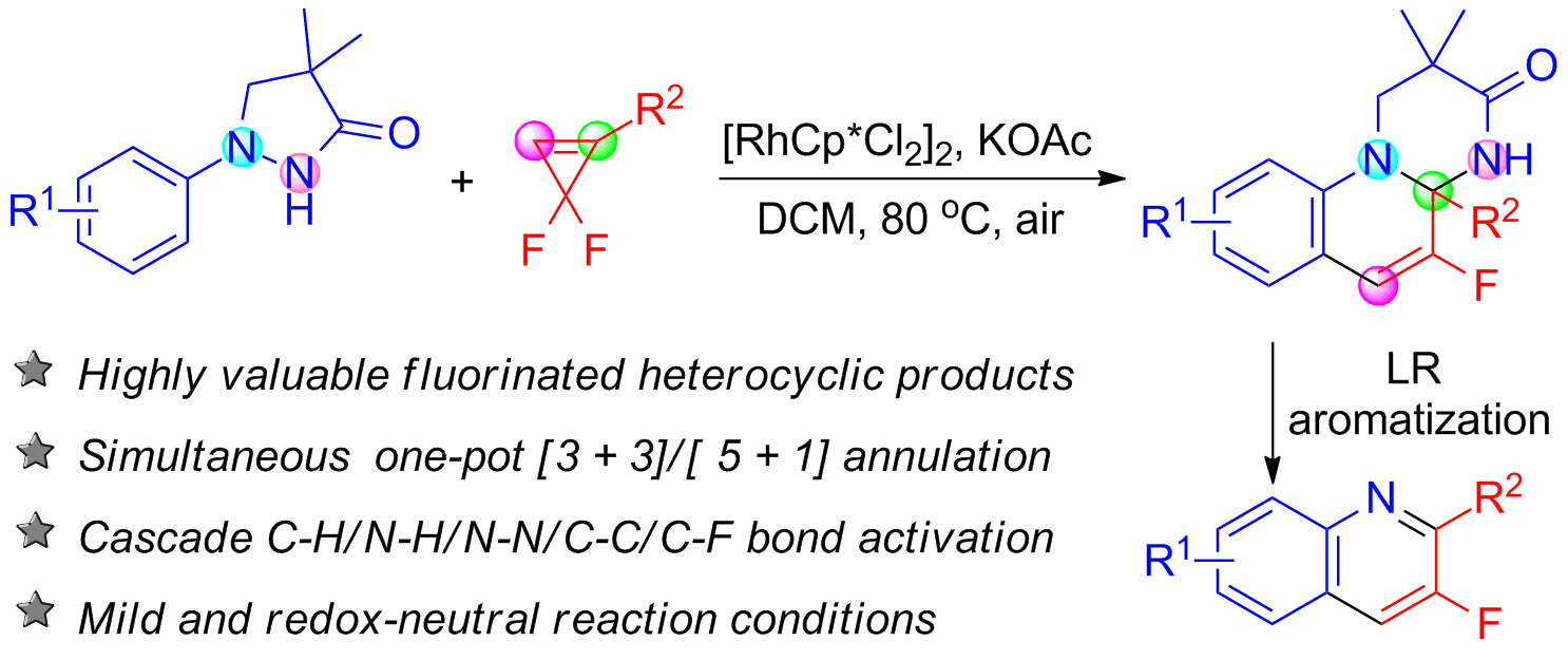 9) Mengyang Shen, Hao Li,; Xinying Zhang, Xuesen Fan.* Rh(III)-catalyzed simultaneous [3+3]/[5+1] annulation of 1-arylpyrazolidinones with gem-difluorocyclopropenes leading to fluorinated pyridopyrimidinone derivatives. Org. Chem. Front. 2022, ASAP.