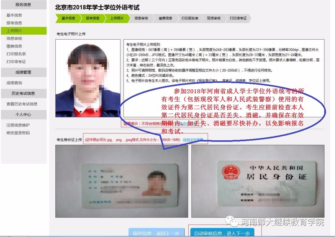 1.参加2018年河南省成人学士学位外语统考的所有考生(包括现役军人和人民武装警察)使用的有效证件为第二代居民身份证。考生应提前检查本人第二代居民身份证是否丢失、消磁,并确保在有效期限内。如丢失、消磁要尽快补办,以免影响报名和考试。