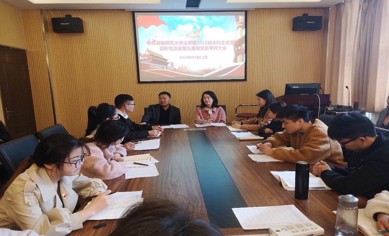 为全面贯彻落实习近平新时代中国特色社会主义思想和党的十九大精神,坚持和加强党对学校的全面领导,推动全面从严治党向基层延伸,有效发挥基层党组织政治核心作用和战斗堡垒作用,引导党员对标争先,充分发挥党员同志先锋模范作用,法学院2015级本科生党支部于2019年3月13日在303党员活动室召开了民主评议会及“五星级党员”评定大会。会议严格按照校党委流程召开,分为自评、测评、考评和综合评定。