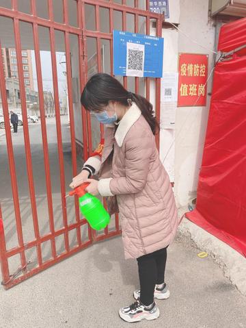 社区是疫情防控的第一道防线。杨艺文同学主动请缨,无畏艰险,坚守“听党话,跟党走”的信念,支援社区疫情防控。在岗期间,她每天早上八点准时到达社区疫情防控卡点执勤。红袖章、口罩、消毒水是她全部的“战疫”物品。“叔叔,为了您和大家的健康,尽量不要外出。”“小朋友,快回家吧,在外边玩容易增加疾病的感染机率。”“阿姨,我给您测一下体温……”登记来往人员信息、对公共区域日常消毒、向居民宣传防疫知识、排查外来人员车辆,在抗击疫情的特殊时期里,她放弃个人休息时间,全力做好每一项执勤防控工作,用实际行动彰显了新时代大学生的青春姿态和精神风貌。