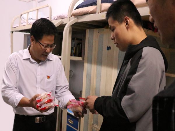 正值中秋佳节之际,为更好的传递学院对广大学生的关爱,让离家学子感受家的温暖,9月10日上午,法学院组织开展佳节看望慰问活动。法学院党委书记张壬,院长于庆生,全体专兼职辅导员深入学生宿舍进行走访,共话家常,共叙情谊。