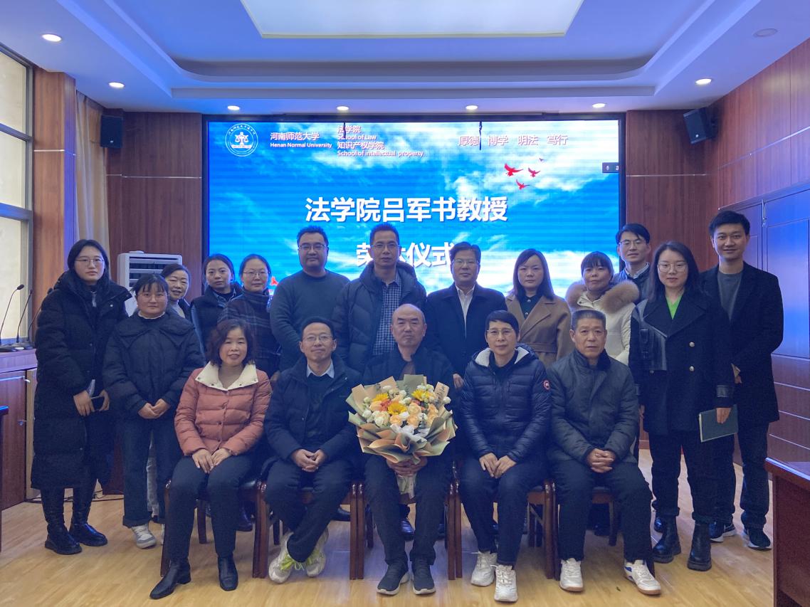 2月17日下午,学院在崇法楼301会议室为吕军书教授隆重举行荣休仪式。学院党委书记张壬、院长于庆生、党委副书记田月红、副院长胡光、郭少飞以及教师代表、学生代表共计20余人参会。仪式由党委副书记、工会主席田月红主持。