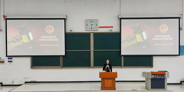 为增强学生对行政诉讼实务性问题的深入理解,2023年4月25日,我院邀请到新乡市中级人民法院行政庭张彩霞副庭长,就行政诉讼合法性审查的相关问题进行授课。