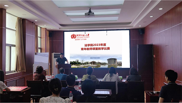 5月20日上午,法学院在崇法楼301报告厅举办2023年度青年教师课堂教学比赛。学院邀请到校督导王海琴教授、陈妍娇副院长、韦留柱教授、陈异慧教授、王晓慧教授担任评委。