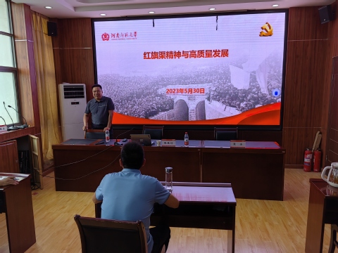 张银付从红旗渠概况、红旗渠修建动因、红旗渠修建过程以及红旗渠的精神内涵四个方面的讲述生动揭示了红旗渠精神的时代价值。他强调,要用红旗渠精神教育人民,特别是党员干部,社会主义是拼出来、干出来、拿命换来的,不仅过去如此,新时代也是如此。今天的物质生活大为改善,但愚公移山、艰苦奋斗的精神不能变。最后,张银付以红旗渠精神融入附属基础教育高质量发展为切入点,结合个人实践经历,围绕从因势而为、自力更生、艰苦创业、团结协作、无私奉献、依法发展六个方面进行分析,指出要以红旗渠精神为精神激励,锐意进取,开拓创新,为办好人民满意基础教育而不懈努力。