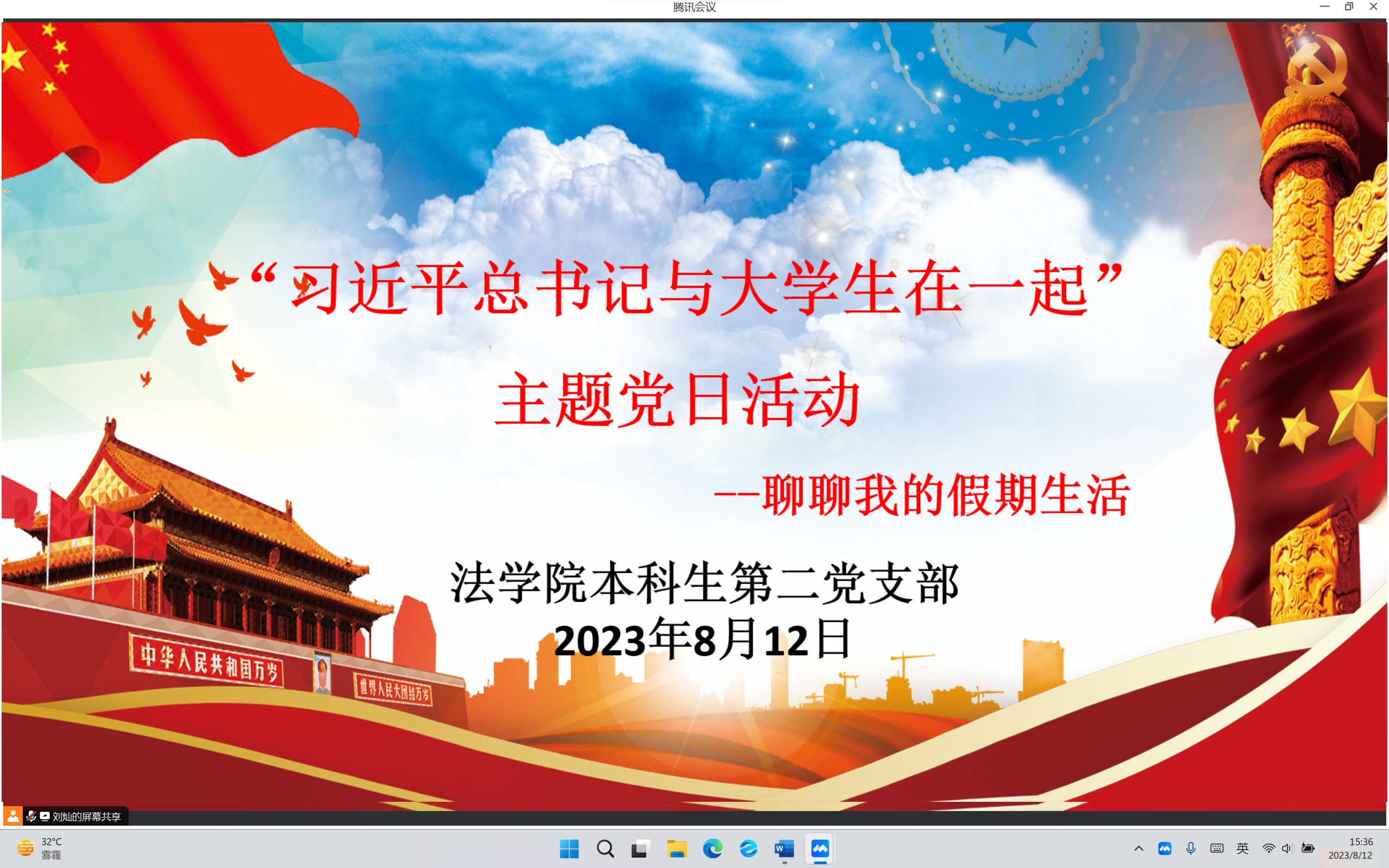 为进一步深化对习近平新时代中国特色社会主义思想的学思践悟,引导青年学生们在深入交流和思考中汲取政治营养,8月12日下午,法学院本科生第二党支部线上开展“习近平与大学生在一起——聊聊我的假期生活”主题党日活动。支部全体成员参加活动。