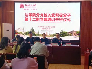 为落实全面从严治党要求,严格党员发展程序,提升党员发展质量,结合校党委的统一部署,法学院分党校第十二期入党积极分子培训班开班仪式于2024年3月29日举行。法学院党委副书记田月红、各支部书记参加开班仪式,组织员赵东方主持开班仪式。