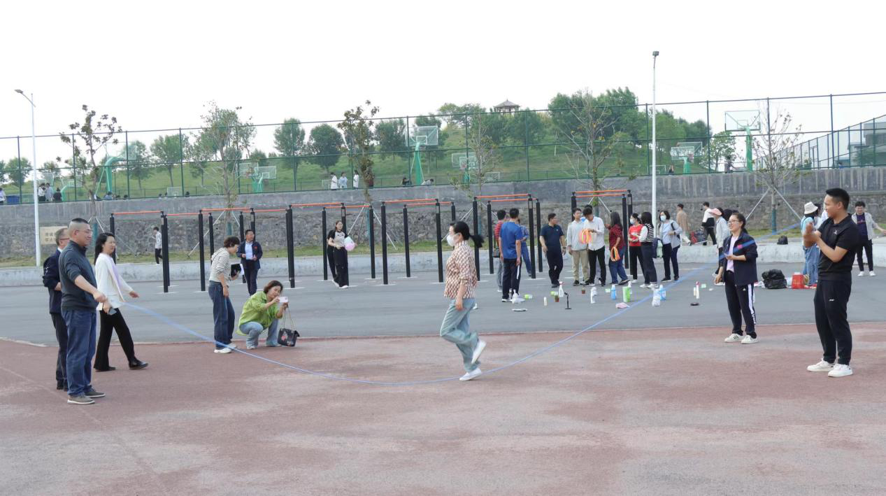 此次趣味运动会共分为“颠球”“背球跑”“跳绳”“踢毽子”“套圈”五个项目。活动中,老师们精神抖擞,默契配合。在“颠球”项目中,参赛老师们目光专注,小心翼翼地颠起乒乓球绕杆一周,重点考察教职工的手眼协调能力。在“背球跑”项目中,两位老师为一组,各组队列整齐,随着哨声吹响,大家争先恐后背着气球从起点跑向终点。在“跳绳”项目中,大家根据自身实力分别选择集体跳绳和单人跳绳,现场欢声笑语不断。在“踢毽子”项目中,老师们跃跃欲试,随着鸡毛毽高低起伏,紧张的节奏带动了围观老师们的加油助威,掌声、加油声,一浪高过一浪。在“套圈”项目中,大家全神贯注,准备、瞄准、套圈一系列动作连贯而娴熟,不少老师经验丰富,百发百中,掀起了整场趣味运动会的高潮。
