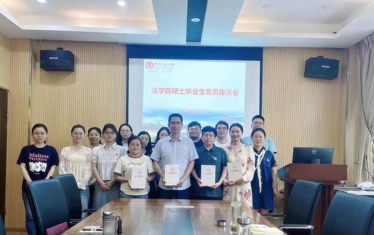 2024年6月7日下午,法学院在崇法楼303会议室召开2024届硕士毕业生研究生党员座谈会。学院党委书记张壬、各研究生党支部书记以及全体硕士毕业生党员参加,会议由研究生法律基础理论党支部书记徐晓主持。