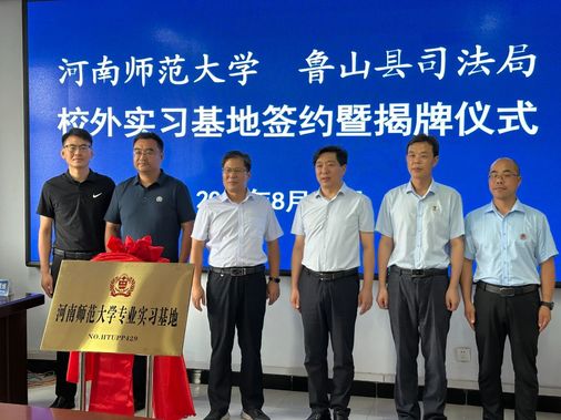 8月16日,伟德官网下载苹果版与鲁山县司法局共建校外实习基地签约暨揭牌仪式在鲁山县司法大楼召开。伟德官网下载苹果版法学院院长于庆生,副院长胡光,鲁山县委常委、政法委书记马向阳,鲁山县司法局党组书记、局长高长见等出席仪式,共同为基地揭牌。