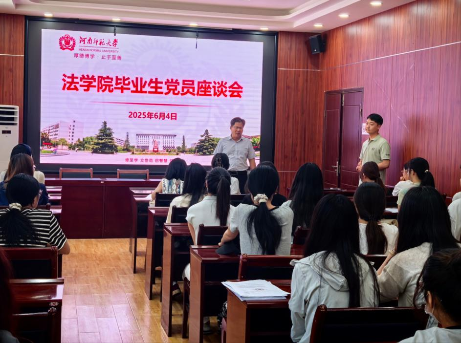 6月4日,法学院在崇法楼301会议室召开2025届本科毕业生党员座谈会,院长于庆生、院党委副书记田月红以及全体本科毕业生党员参加,座谈会由毕业班党支部书记宁晨阳主持。