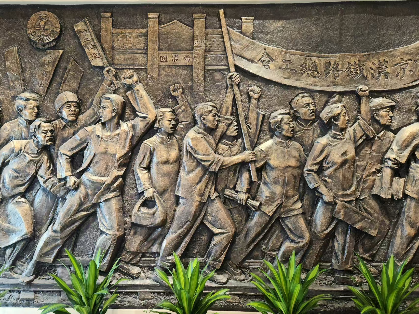 实践团成员驻足于普乐园旧址,透过大型群像浮雕,仿佛看见1923年2月那场改变中国工运史的壮阔图景:在党的领导下,三万名铁路工人以为自由而战,为人权而战的怒吼,掀起反对军阀统治的革命怒潮。