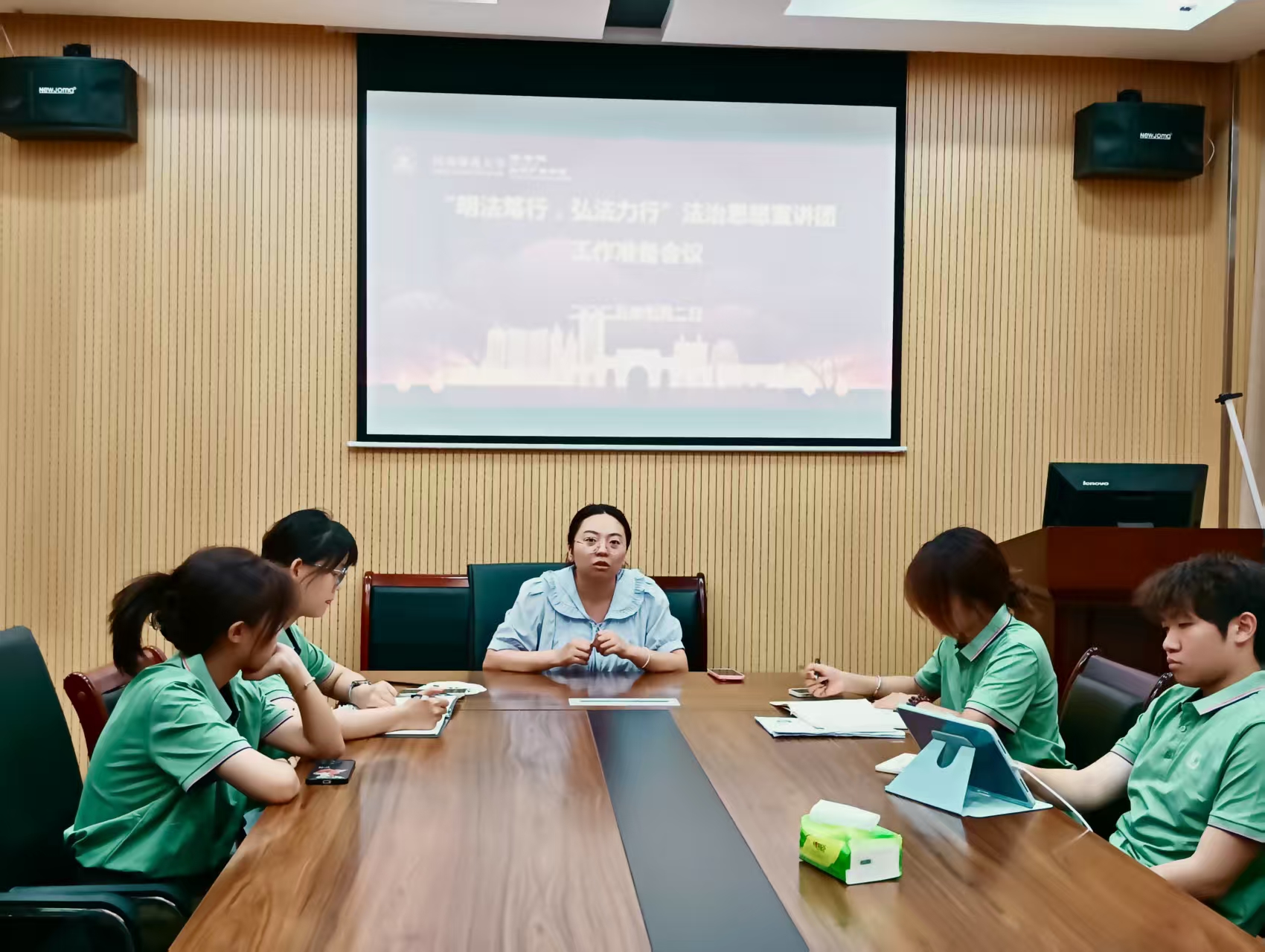 会议伊始,团队负责人王亚楠老师向同学们介绍了此次活动的主要目的,并对其目标和意义作出特别强调。王亚楠老师指出,法治是社会稳定的基石,通过普法可以有效地提高人们的法律意识。本次活动我们将以新乡市为中心,在共产主义青年渠、社区、学校等多个地点进行普法宣传,旨在向大众普及法律知识,为构建法治社会贡献自己的力量。
