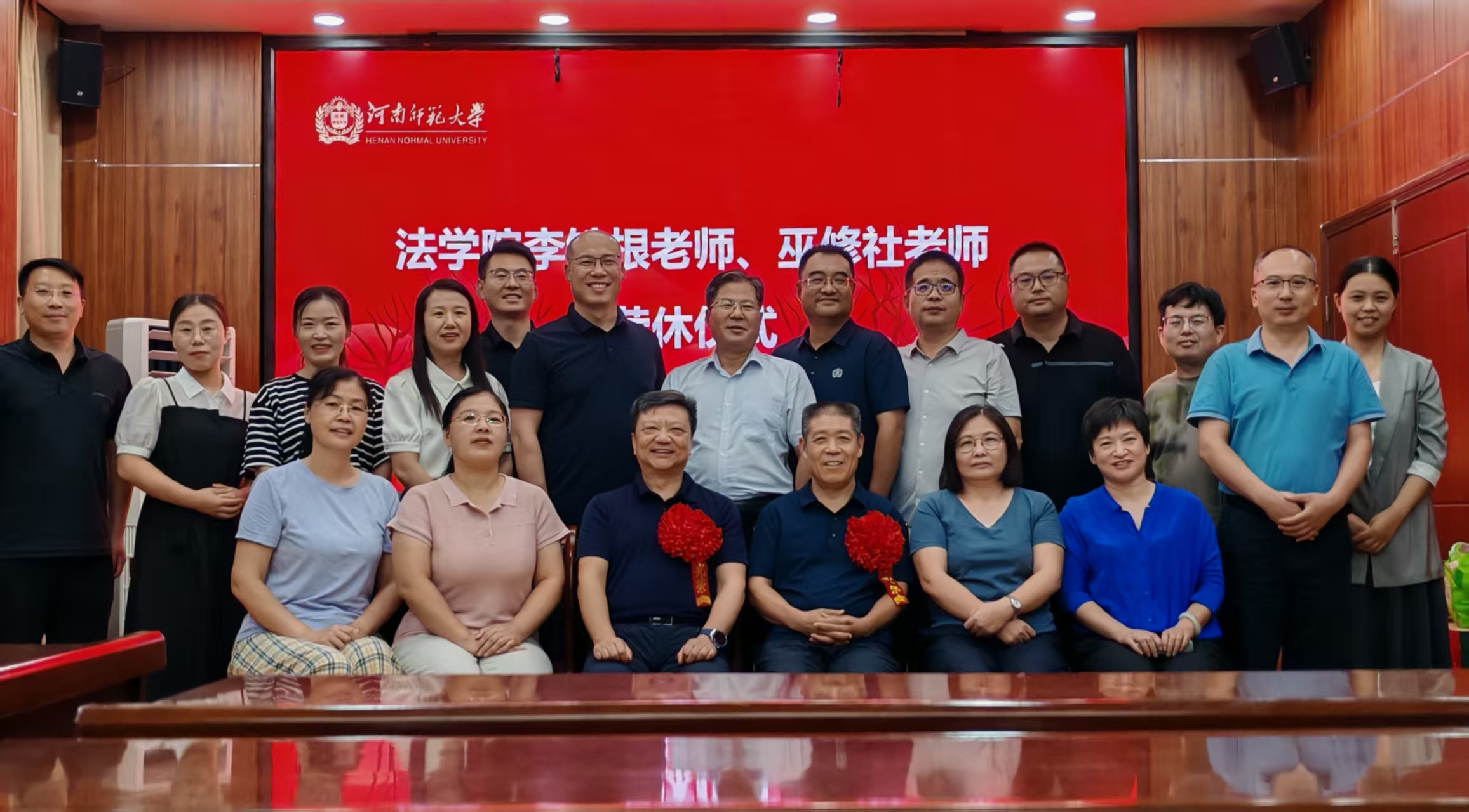 仪式上,院长于庆生为两位老师颁发荣休纪念牌,学生代表敬献鲜花,全体与会人员合影留念,为这场温馨而庄重的仪式画上圆满句号。