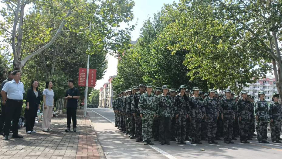 微风徐徐,阳光和煦,“齐步走!一二一,一二一……”新生们跟着口令起步向前走,展现出昂扬向上的精神风貌和团结一致的集体面貌。他们步伐铿锵,目光坚毅,每一个动作都凝聚着青春的汗水与力量。看着气质昂扬的新同学们,院长于庆生脸上露出了欣慰的笑容,他关心到“天气这么冷,热水瓶里的热水要常备不能断,让同学们训练间隙能够暖暖胃,面包、红糖也要及时定期补充”,院领导心中始终在细微末节处装着学生。