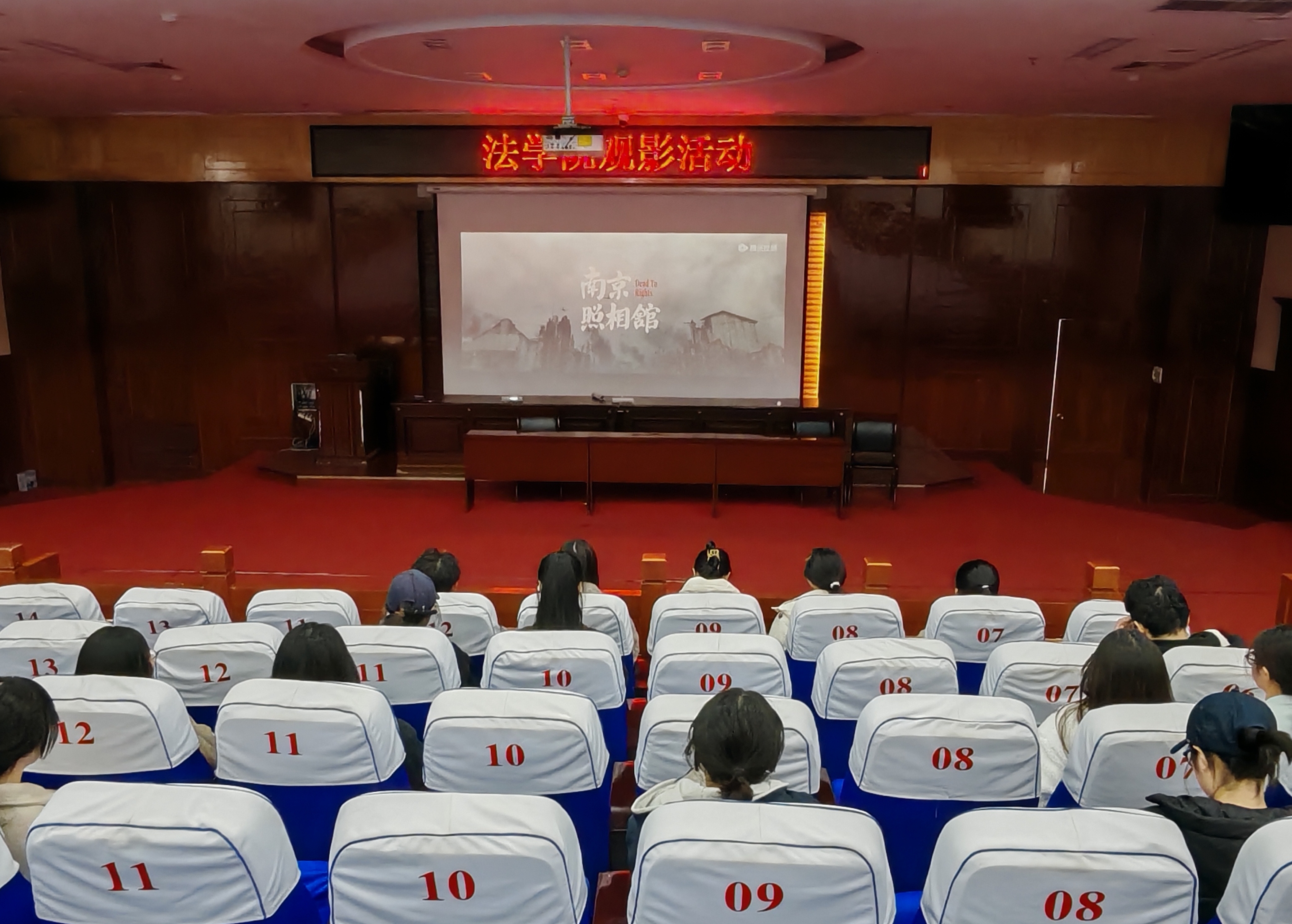 为引导学生铭记历史、传承红色基因,厚植家国情怀,11月1日晚,法学院在模拟法庭举办主题观影活动,组织学生集中观看历史题材影片《南京照相馆》,近百名同学参与此次活动。