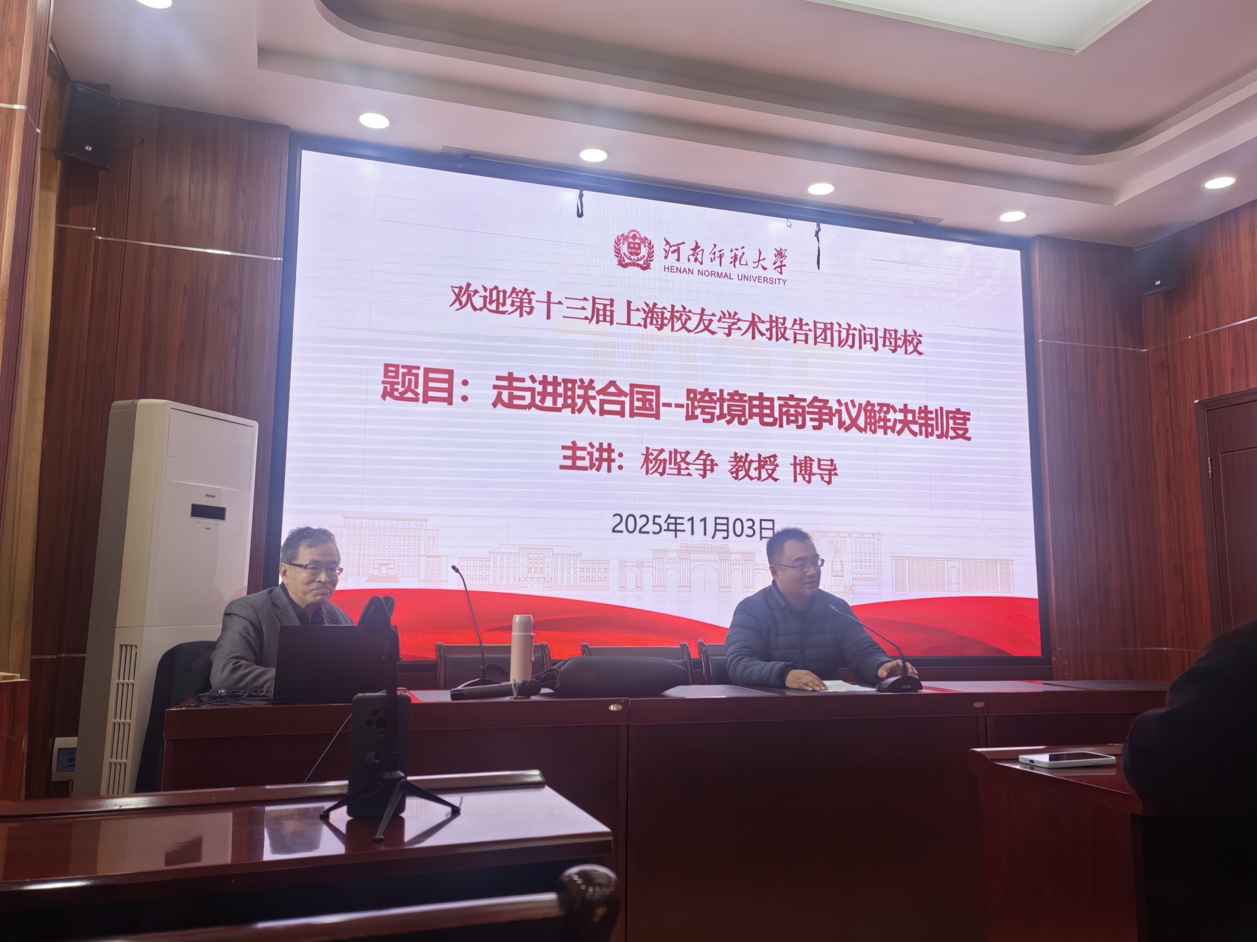 2025年11月3日下午,上海校友学术报告团讲座在崇法楼三楼301室举行。我校第十三届上海校友学术报告团、化学化工学院1981届校友、上海理工大学电子商务发展研究院院长杨坚争教授担任主讲,法学院副院长胡光主持,学院部分本科生和研究生参加了讲座。
