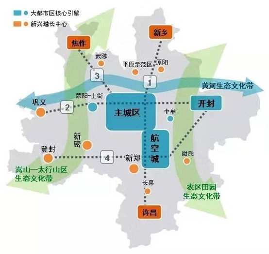 《规划》指出,未来,随着郑州辐射带动能力和郑州大都市区一体化水平的不断提升,在现阶段空间范围的基础上,会逐步将开封市、新乡市、焦作市、许昌市所辖县(市)及汝州市、兰考县等省直管县(市)纳入郑州大都市区范围,加快形成网络化、组团式、集约型空间发展格局,引领带动中原城市群向具有国际影响力的国家级城市群迈进。