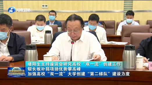 9月26日,全省“双一流”创建工作座谈会在郑州召开,会议由省委书记楼阳生主持,省委副书记孔昌生,省委常委、秘书长穆为民,副省长霍金花等出席会议。我校党委书记赵国祥,校长常俊标参加座谈会并作汇报发言。