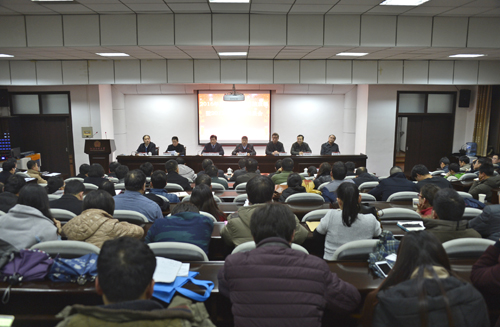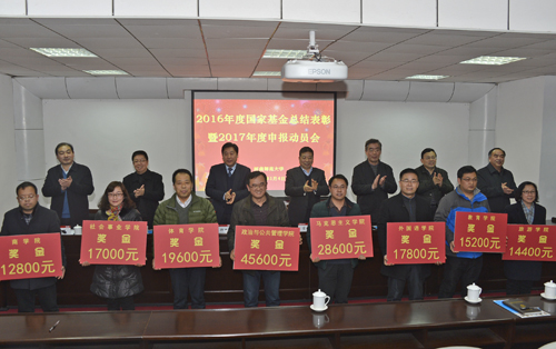 科技处处长郭海明和社科处处长刘怀光分别就我校2016年度国家自然科技基金和国家社科基金的申报与资助情况、纵向横向对比情况、国家基金获取的不足与短板、2017国家基金任务分解与时间安排等进行专题汇报。